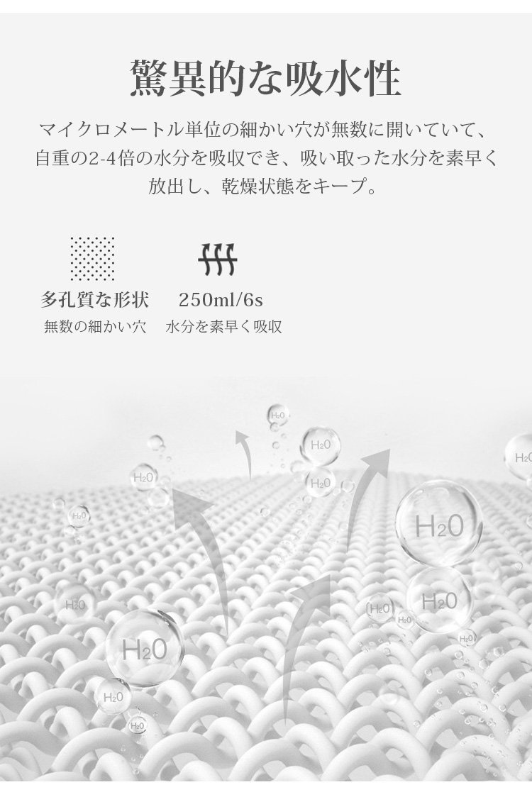 天然珪藻土、優れた吸水性・速乾性、防ダニ・抗菌